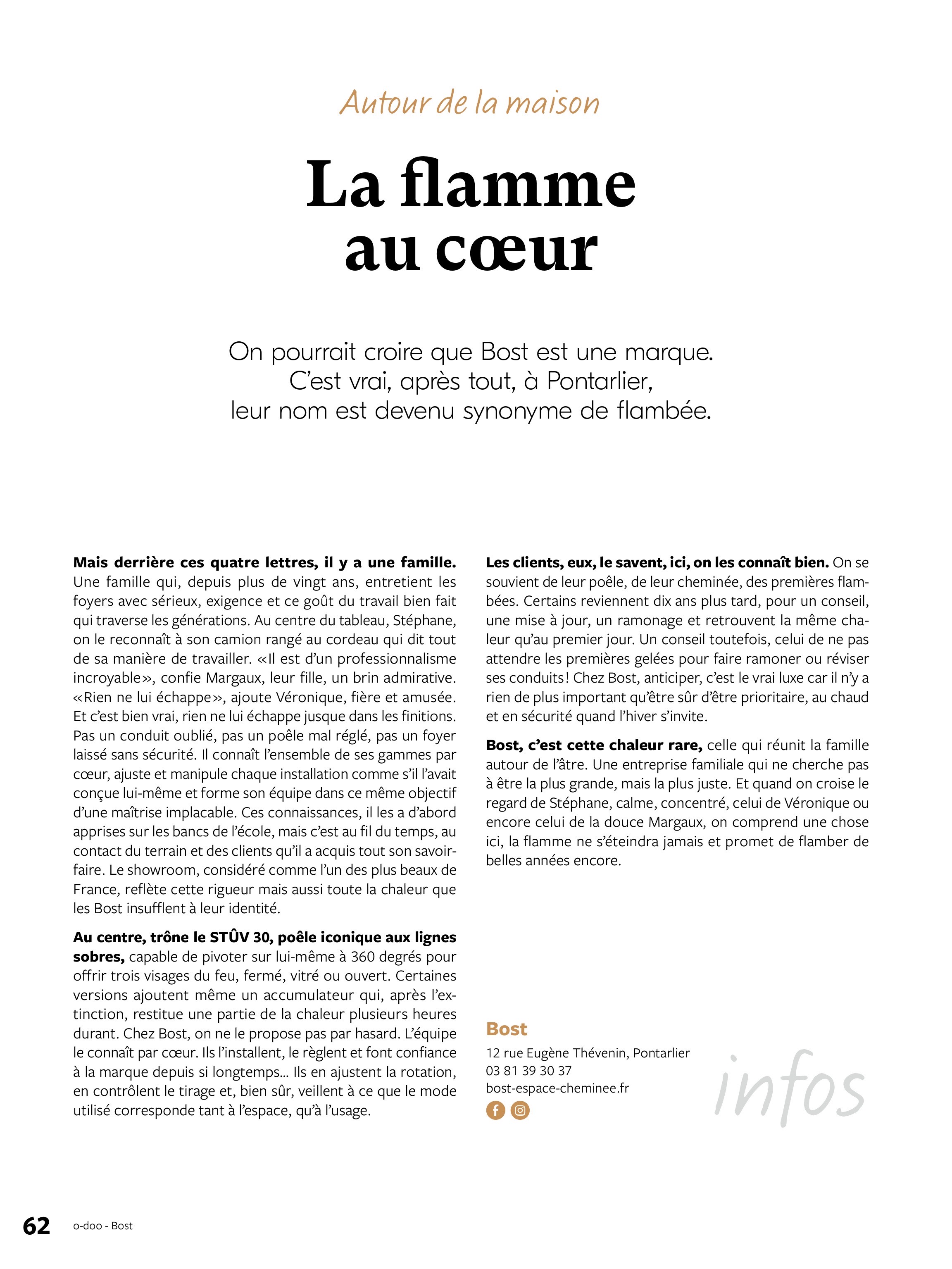 Inaugurée en 2017, le show-room de 300 m² de Bost L'Espace Poêles et Cheminées à Pontarlier allie matériaux naturels et design audacieux. Il met en valeurs nos produits dans un cadre extrêmement qualitatif.